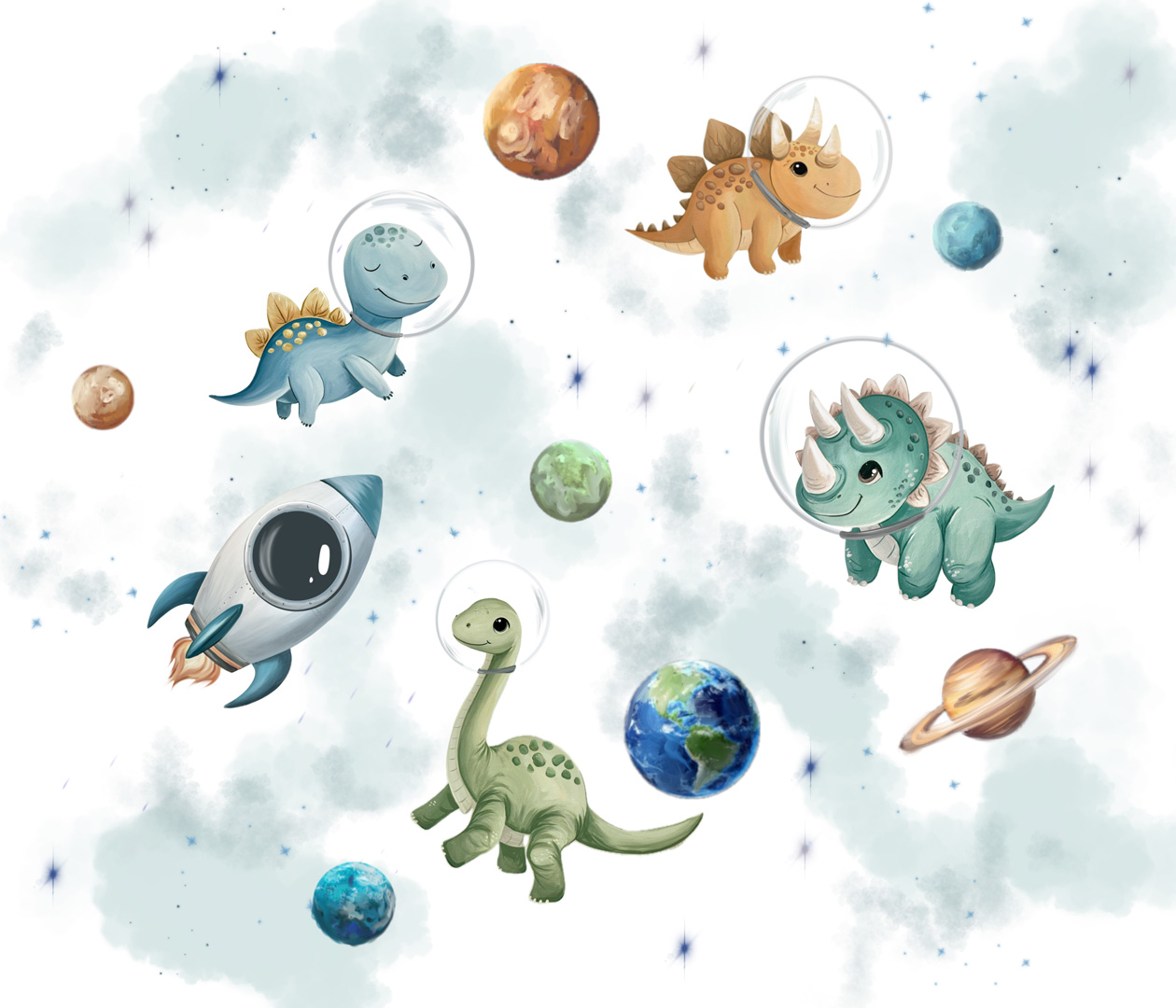 Painel de Parede MUNDO ENCANTADO 600182 - Dinos Astronautas